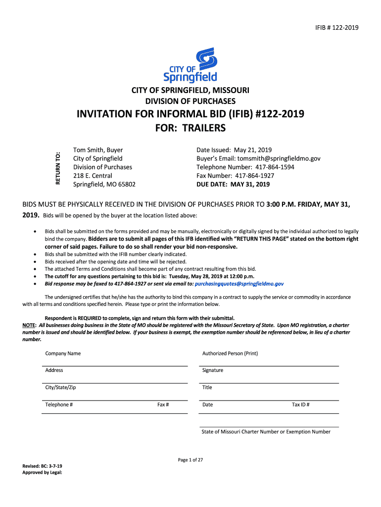 FIB # 1222019CITY OF SPRINGFIELD, MISSOURI
