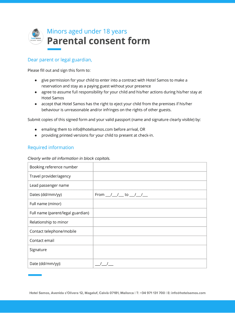 Get the free Parental consent form - Hotel Samos
