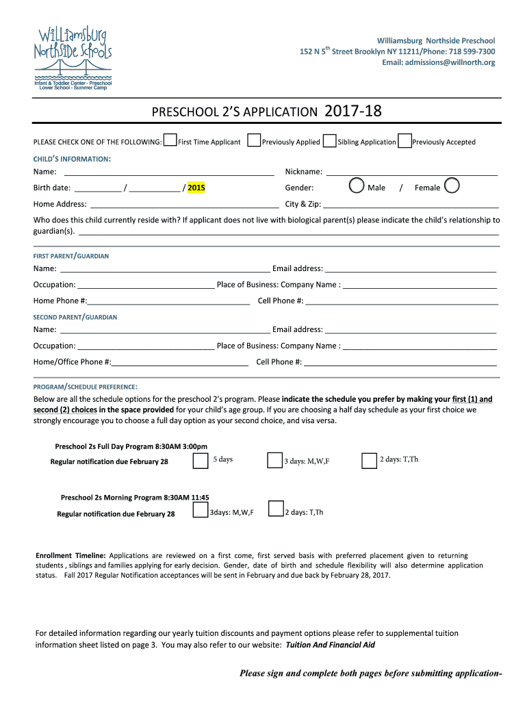 Email:admissions×will north.orgPRESCHOOL2SAPPLICATION201718