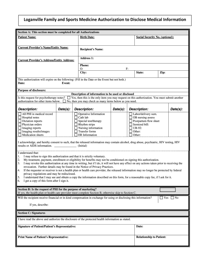 Loganville Family and Sports Medicine Authorization to Disclose Medical Information