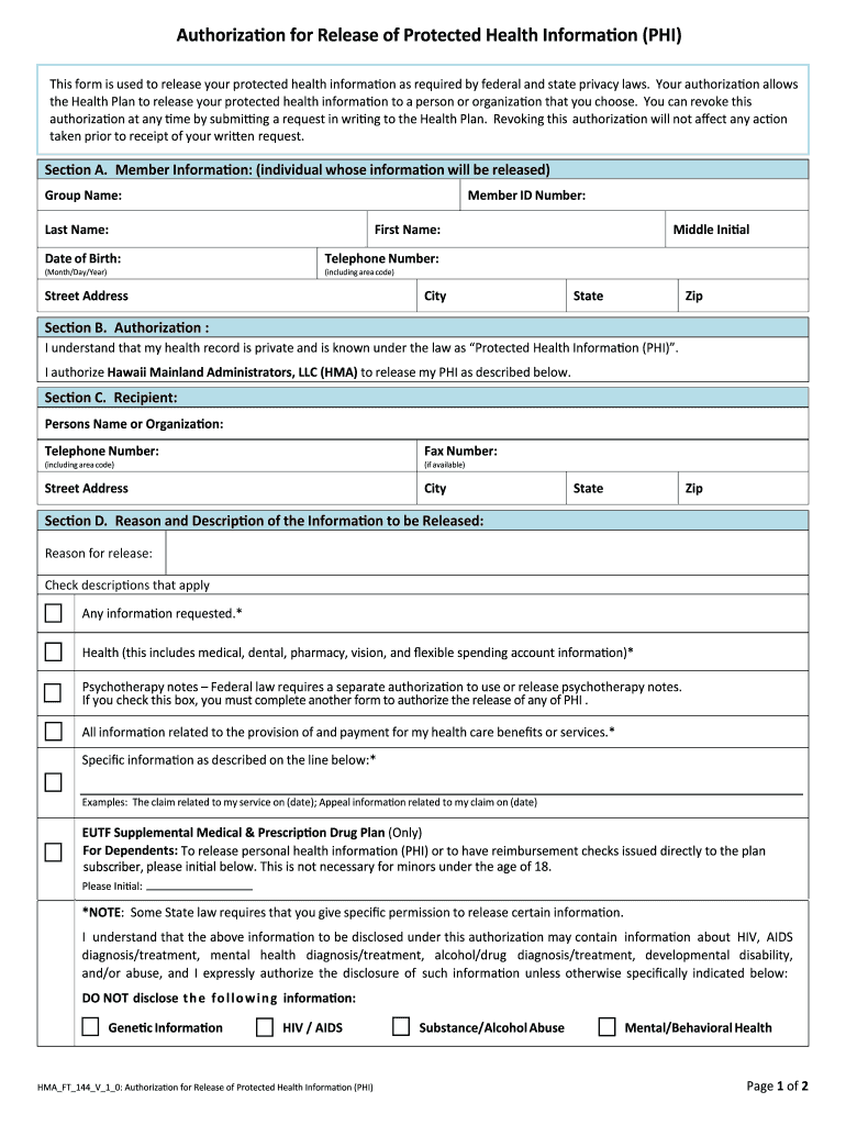 This form is used to release your protected health inform on as required by federal and state privacy laws. Your authorize on allows