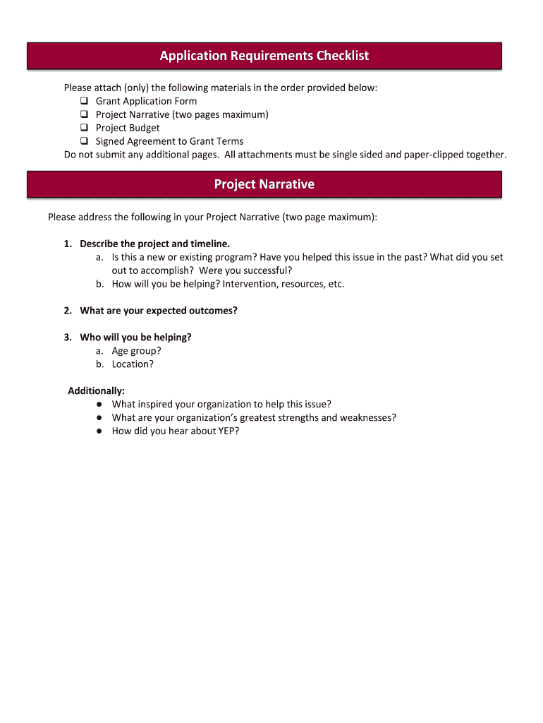 Postmarked, emailed, or delivered Grant Description and Criteria