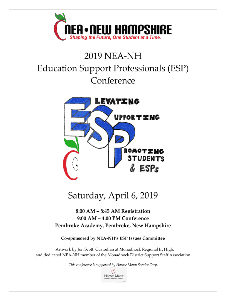 2019 NEATH Education Support Professionals (ESP) Conference Saturday, April 6, 2019 8:00 AM 8:45 AM Registration 9:00 AM 4:00 PM Conference Pembroke Academy, Pembroke, New Hampshire Cosponsored by