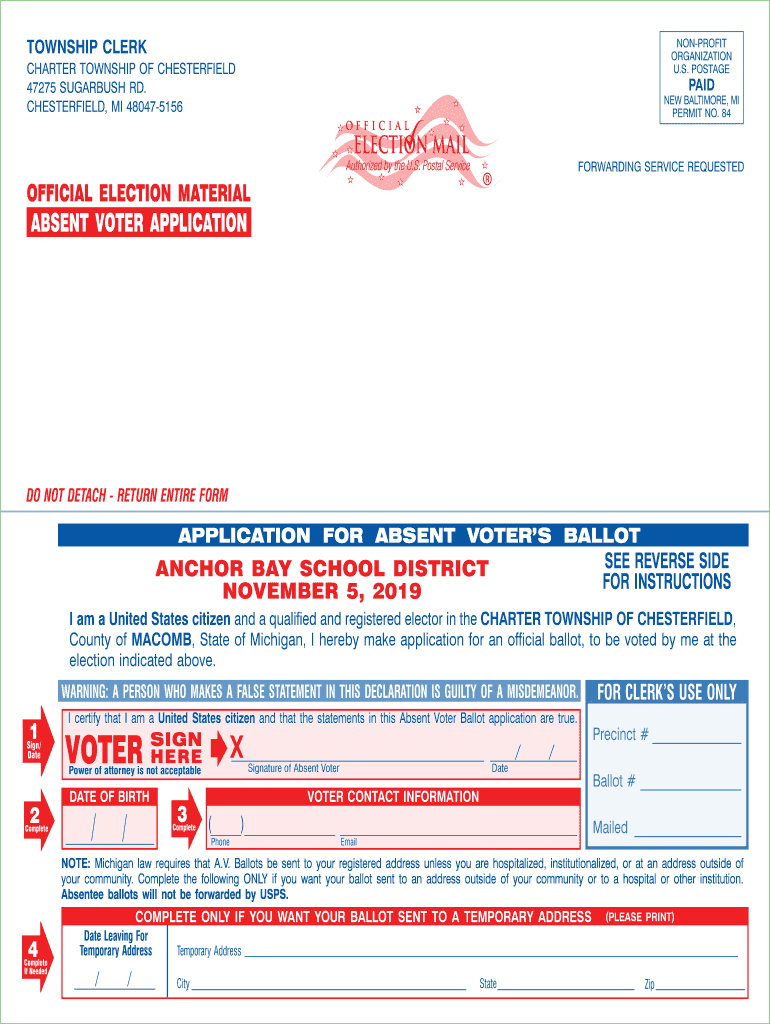 TOWNSHIP CLERKNONPROFIT ORGANIZATION U.S. POSTAGECHARTER TOWNSHIP OF CHESTERFIELD 47275 SUGARS RD. CHESTERFIELD, MI 480475156PAIDNEW BALTIMORE, MI Permits NO. 84FORWARDING SERVICE REQUESTEDOFFICIAL