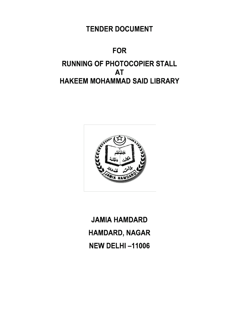 Get the free J A M I A H A M D A R D HAMDARD NAGAR NEW DELHI TENDER ...