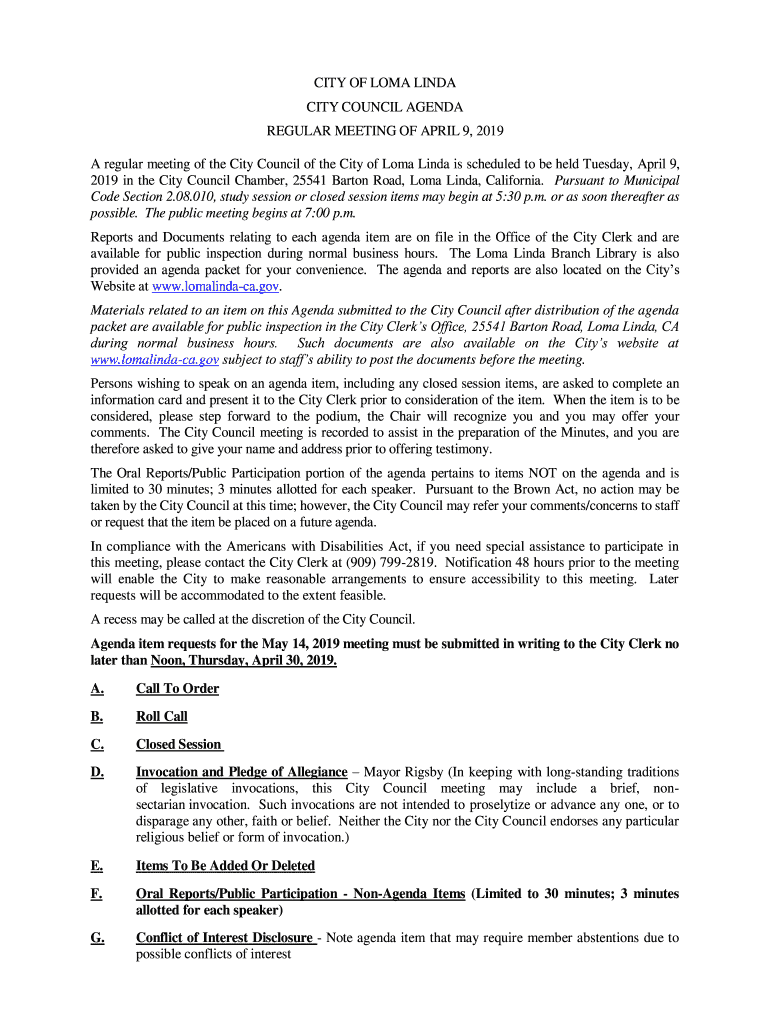 A regular meeting of the City Council of the City of Coma Linda is scheduled to be held Tuesday, April 9,