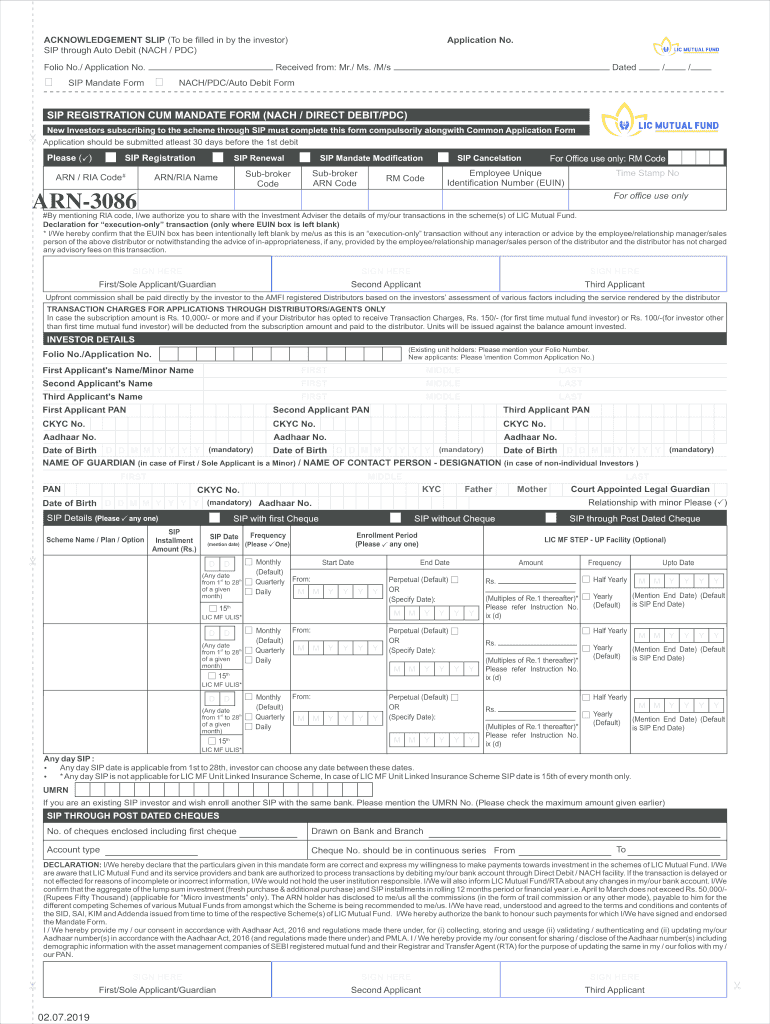 Get the free LIC MF Any Day SIP Form 2018.cdr