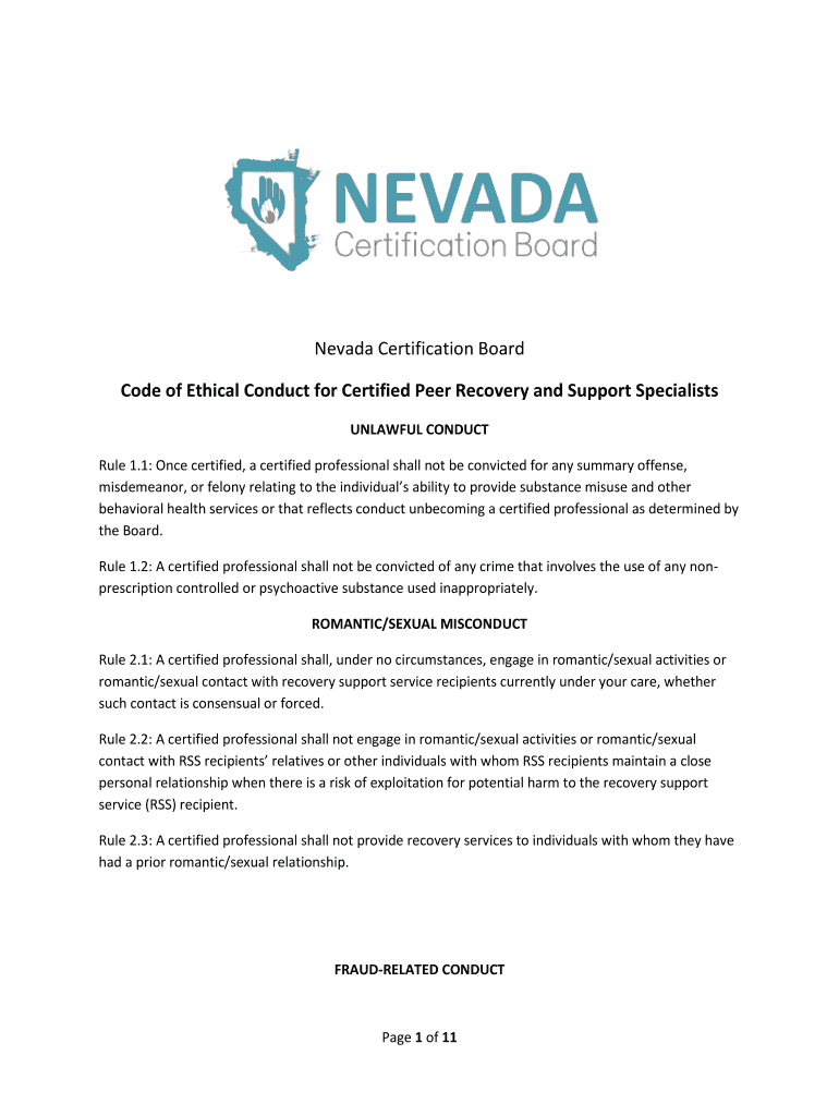 Code of Ethical Conduct for Certified Peer Recovery and Support Specialists