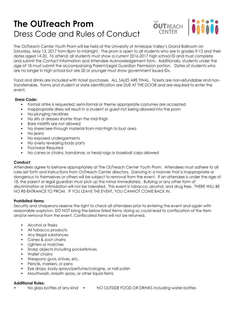 The Outreach Center Youth Prom will be held at the University of Antelope Valleys Grand Ballroom on