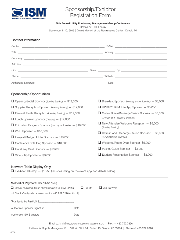Sponsorship/Exhibitor Registration Form 88th Annual Utility Purchasing Management Group Conference Hosted by: DUE Energy September 810, 2019 Detroit Marriott at the Renaissance Center Detroit, Contact