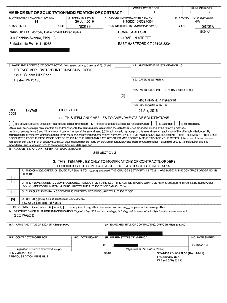 1. CONTRACT ID CODE2. AMENDMENT/MODIFICATION NO.3. EFFECTIVE DATE4. REQUISITION/PURCHASE REQ. NO.30Jan2019