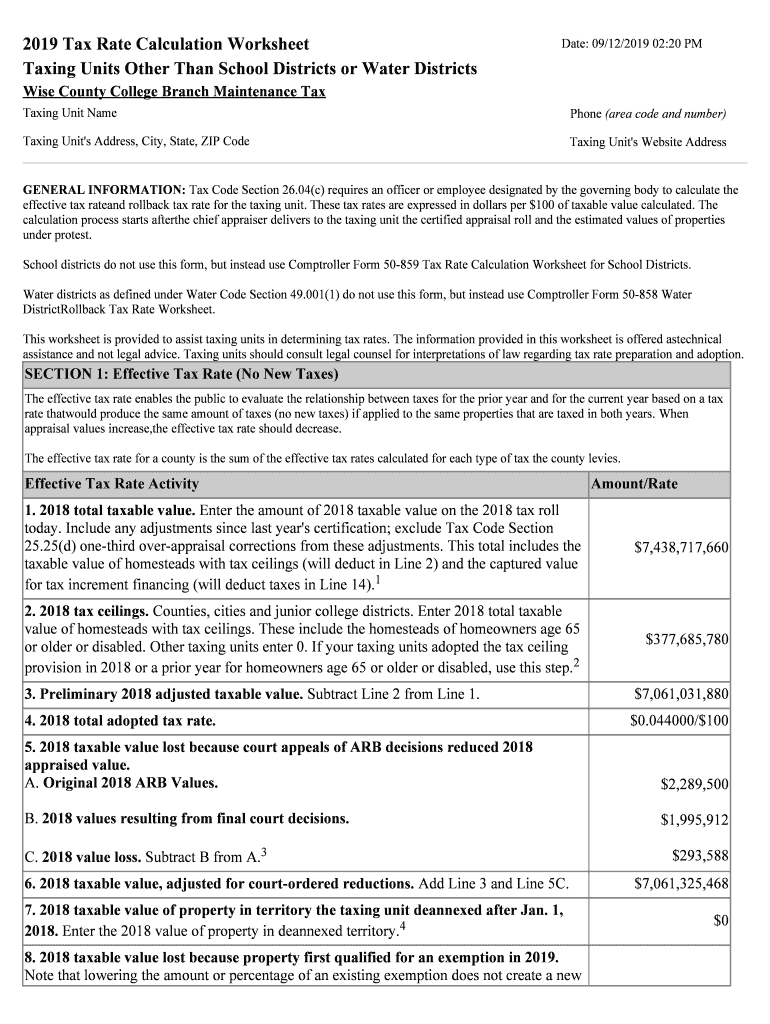 2019 Tax Rate Calculation Worksheet