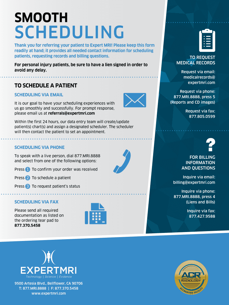 Thank you for referring your patient to Expert MRI! Please keep this form