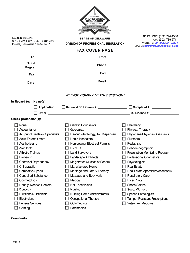 Get the free Delaware Professional Regulation Fax Cover Page