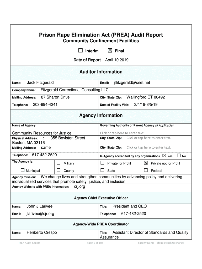 Get the free Prison Rape Elimination Act (PREA) Audit Report ... - crj.org