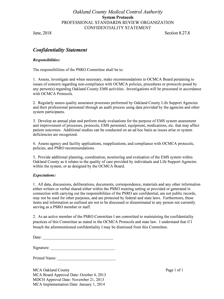 Section 8.27.8Confidentiality Statement