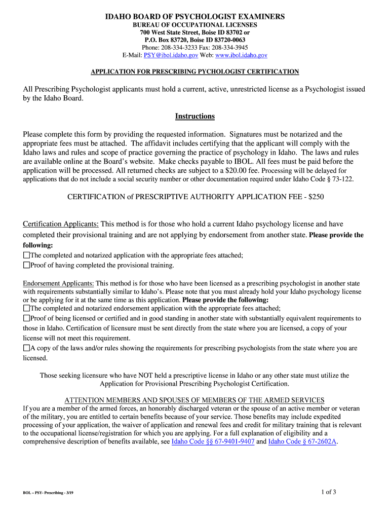 How to fill out idaho board of psychologist