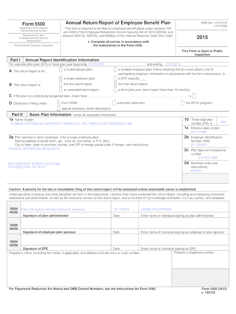 Get the free 2015 Instructions for Form 5500-EZ - Internal Revenue Service