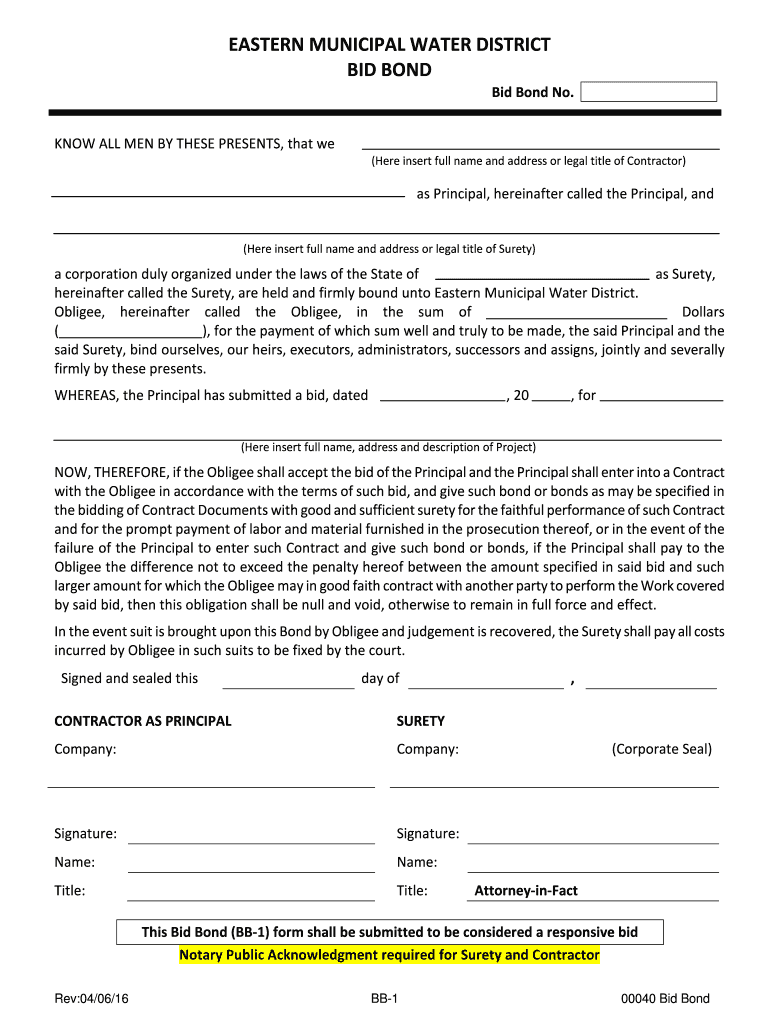 NOTICE TO BIDDERS: The attached Proposal Package, when completed by you and returned to this District,