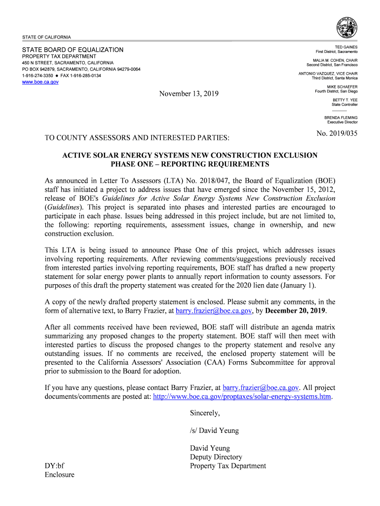 STATE OF CALIFORNIA TED GAINES First District, SacramentoSTATE BOARD OF EQUALIZATION PROPERTY TAX DEPARTMENTAL M. COHEN, CHAIR Second District, San Francisco450 N STREET, SACRAMENTO, CALIFORNIA PO