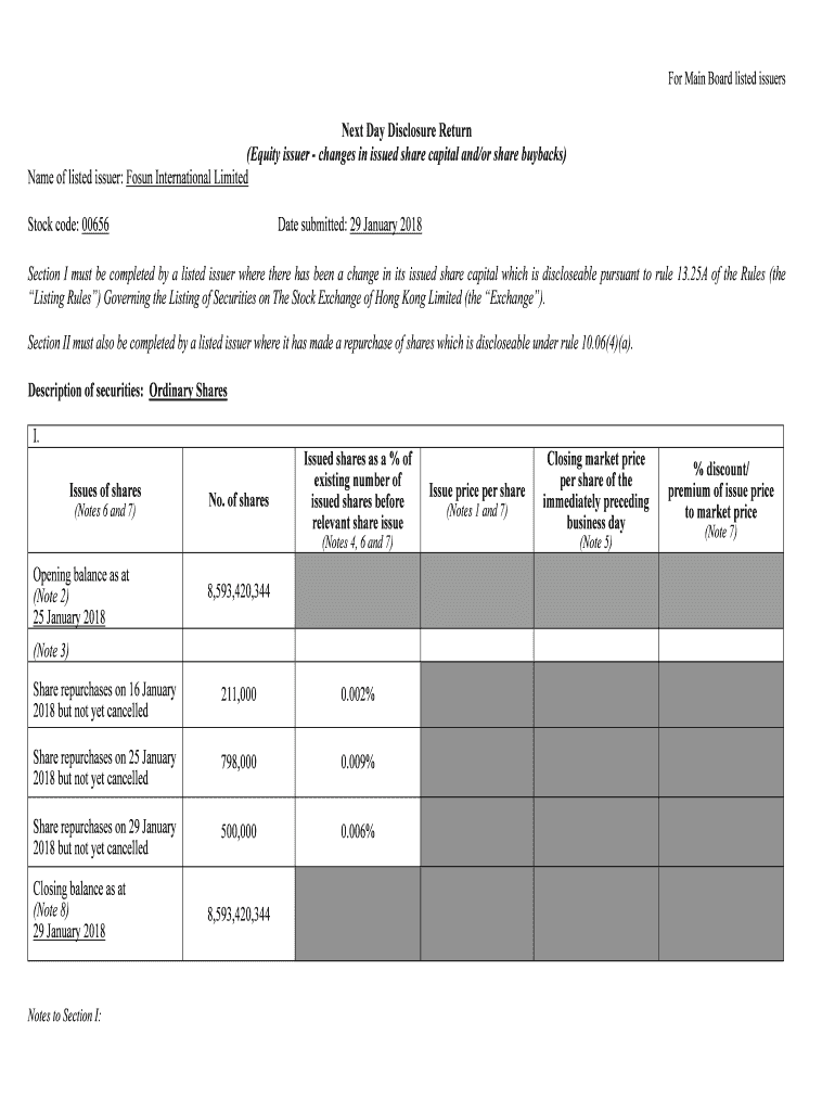 For Main Board listed issuersNext Day Disclosure Return (Equity issuer changes in issued share capital and/or share buybacks) Name of listed issuer: Bosun International Limited Stock code: 00656Date