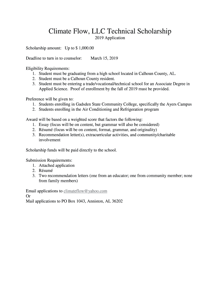 Deadline to turn in to counselor:March 15, 2019Eligibility Requirements: