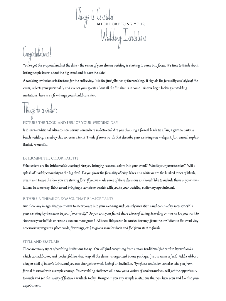 Things to Consider before ordering yourCongratulations! Wedding InvitationsYouve got the proposal and set the date the vision of your dream wedding is starting to come into focus. It's time to think