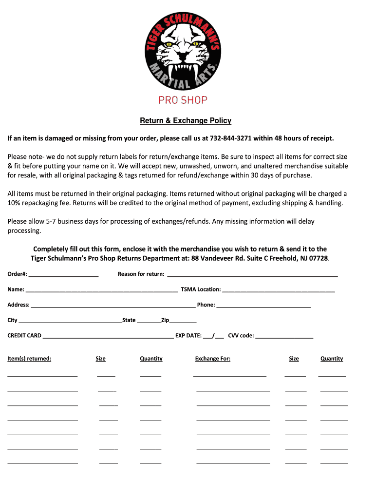 Return & Exchange Policy If an item is damaged or missing from your order, please call us at 7328443271 within 48 hours of receipt. Please note we do not supply return labels for return/exchange items.
