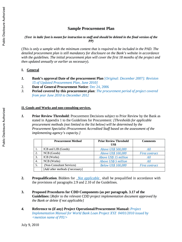 Get the free detailed procurement plan is still mandatory for disclosure on the Banks website in ...