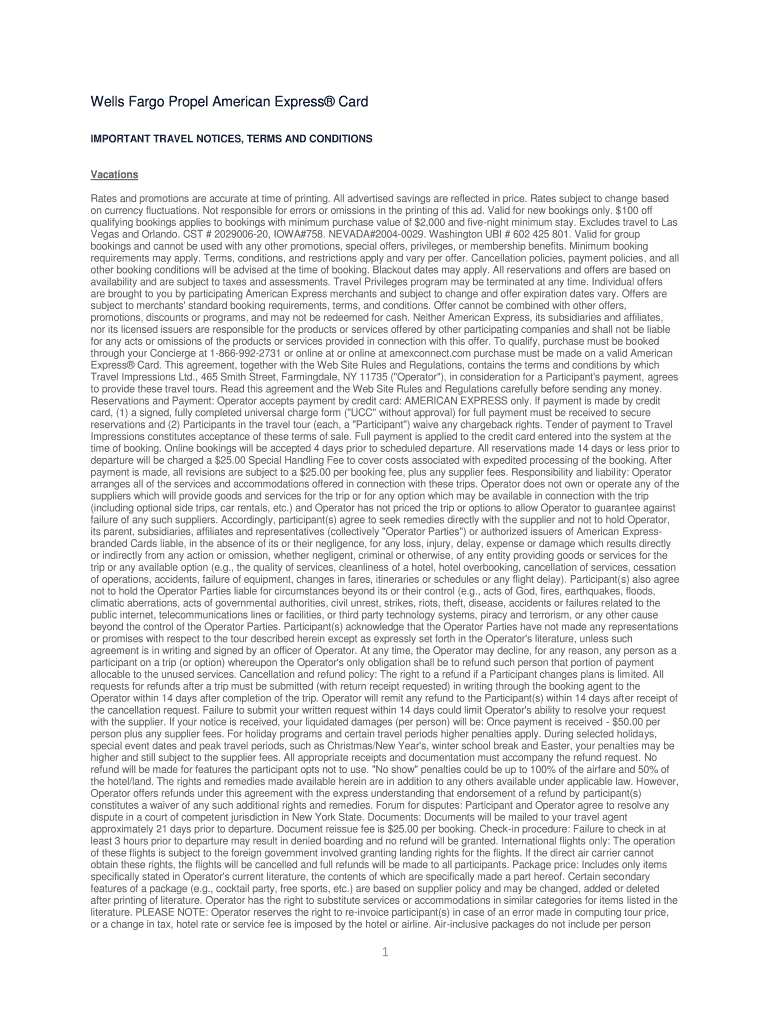 IMPORTANT TRAVEL NOTICES, TERMS AND CONDITIONSVacations