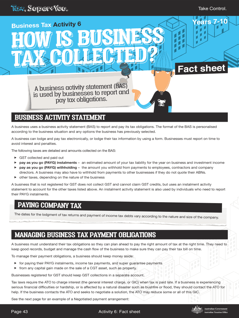 Tax, Super+You. Take Control. Business Tax Activity 6HOW IS BUSINESS