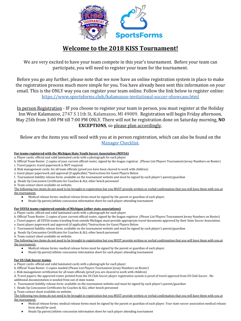 We are very excited to have your team compete in this year's tournament. Before your team can