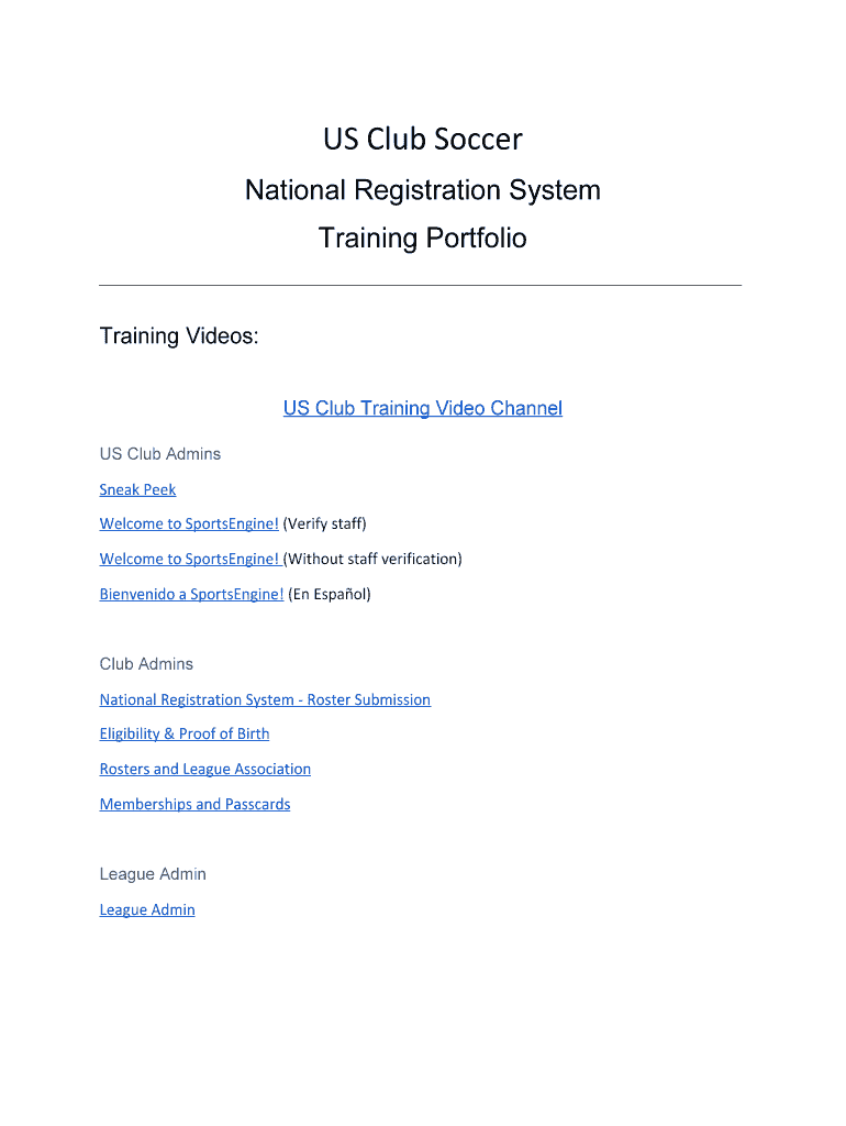 Get the free National Registration System Transition Update - US Club ...