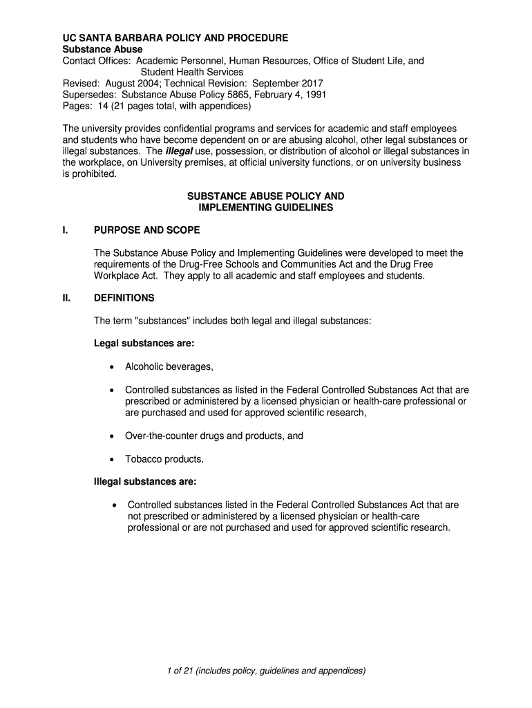 Get the free UC SANTA BARBARA POLICY AND PROCEDURE Substance Abuse Contact ...