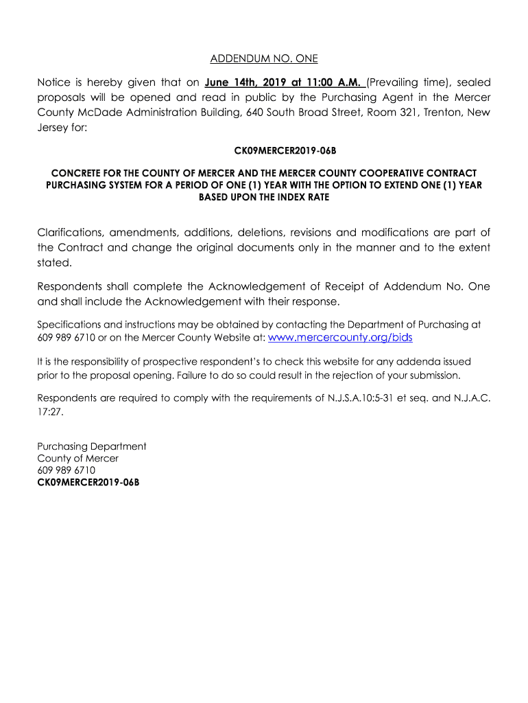 Get the free ADDENDUM NO. ONE Notice is hereby given that on ... - BidNet