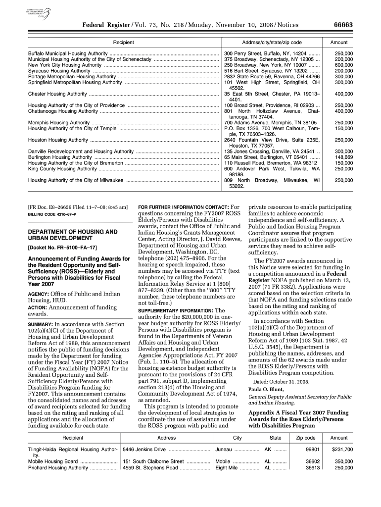 66663Federal Register / Vol. 73, No. 218 / Monday, November 10, 2008 / Notices
