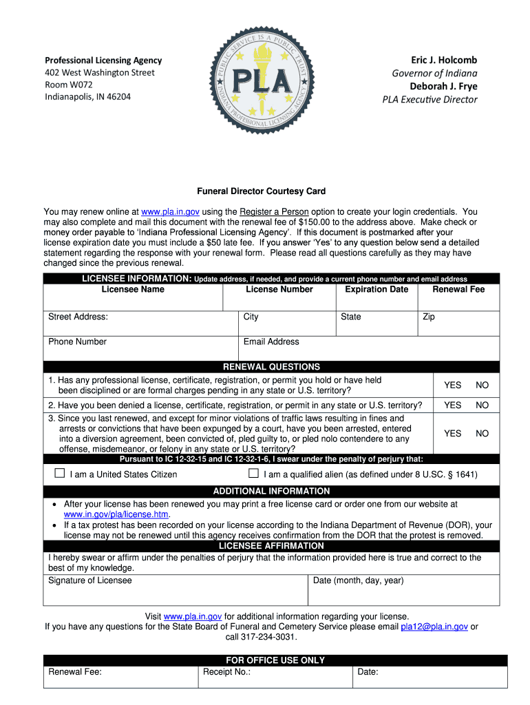 You may renew online at www.pla.in.gov using the Register a Person option to create your login credentials. You