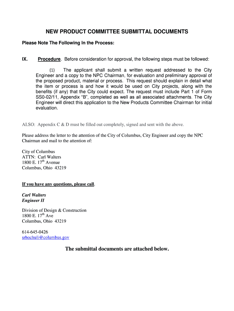 NEW PRODUCT COMMITTEE SUBMITTAL DOCUMENTS
