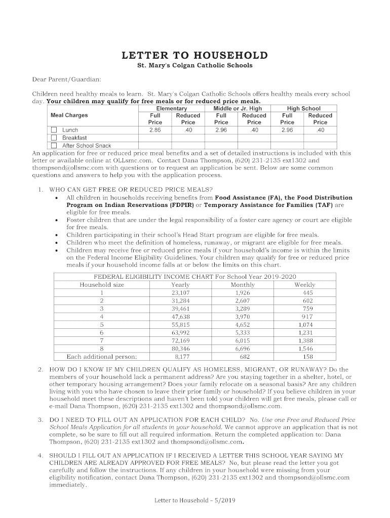 Children need healthy meals to learn. St. Mary\'s Colman Catholic Schools offers healthy meals every school