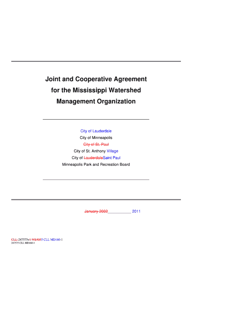 Joint and Cooperative Agreement for the Mississippi Watershed Management Organization City of Lauderdale City of Minneapolis City of St. Paul City of St. Anthony Village City of LauderdaleSaint Paul