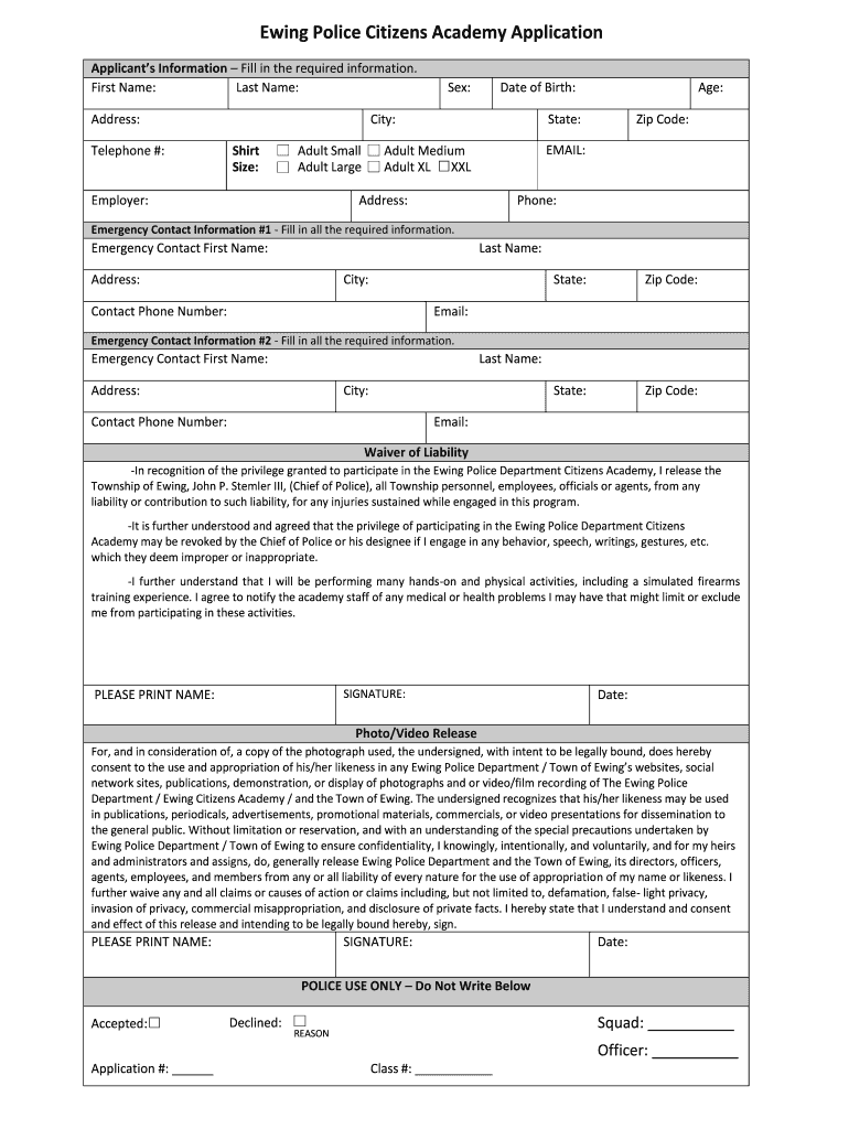 Get the free Ewing New Jersey - Citizens' Police Academy Program