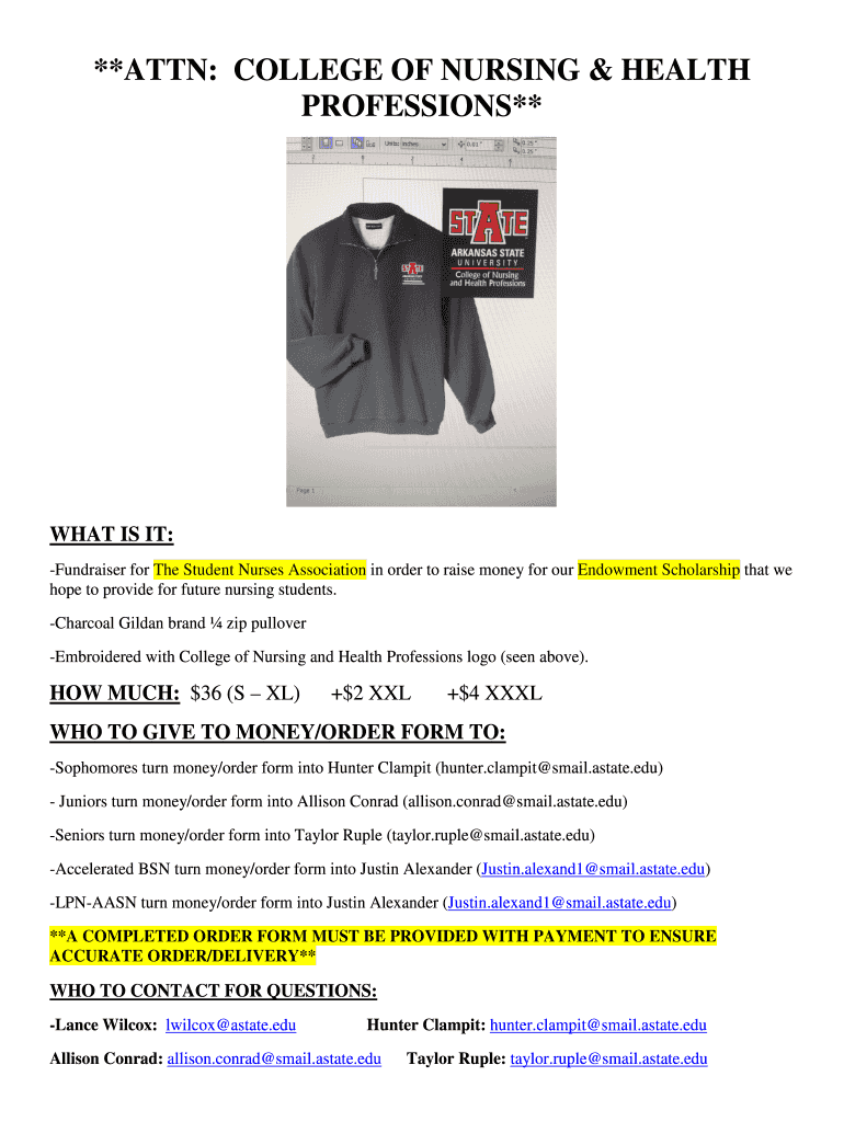 **ATTN: COLLEGE OF NURSING & HEALTH PROFESSIONS**WHAT IS IT: Fundraiser for The Student Nurses Association in order to raise money for our Endowment Scholarship that we hope to provide for future