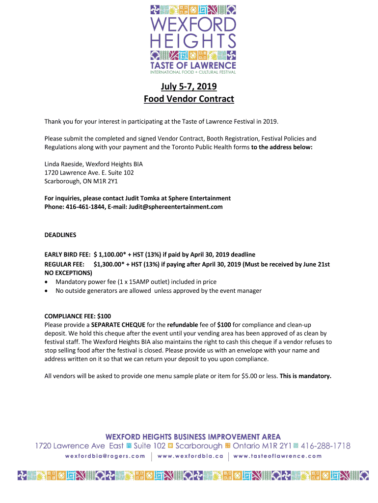 Get the free Non-Food Vendor Contract - Wexford Heights BIA