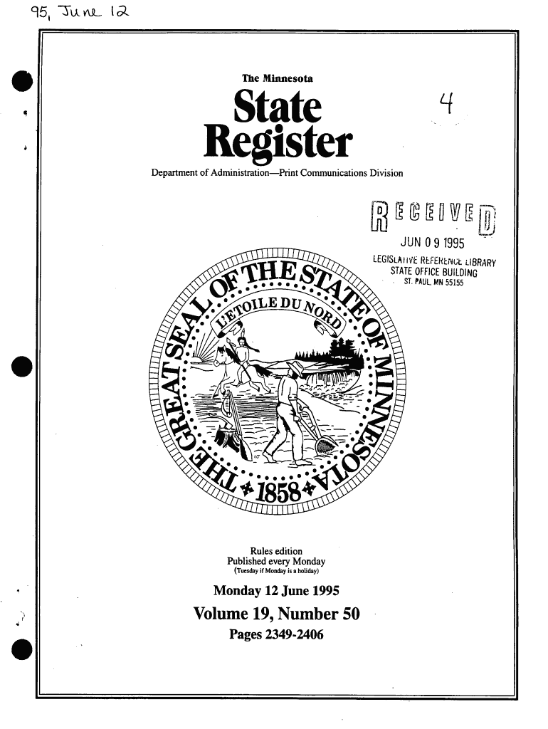 RegisterDepartment of AdministrationPrint Communications DivisionJUN09 1995LiLEGISLAnV REFELiBRARY