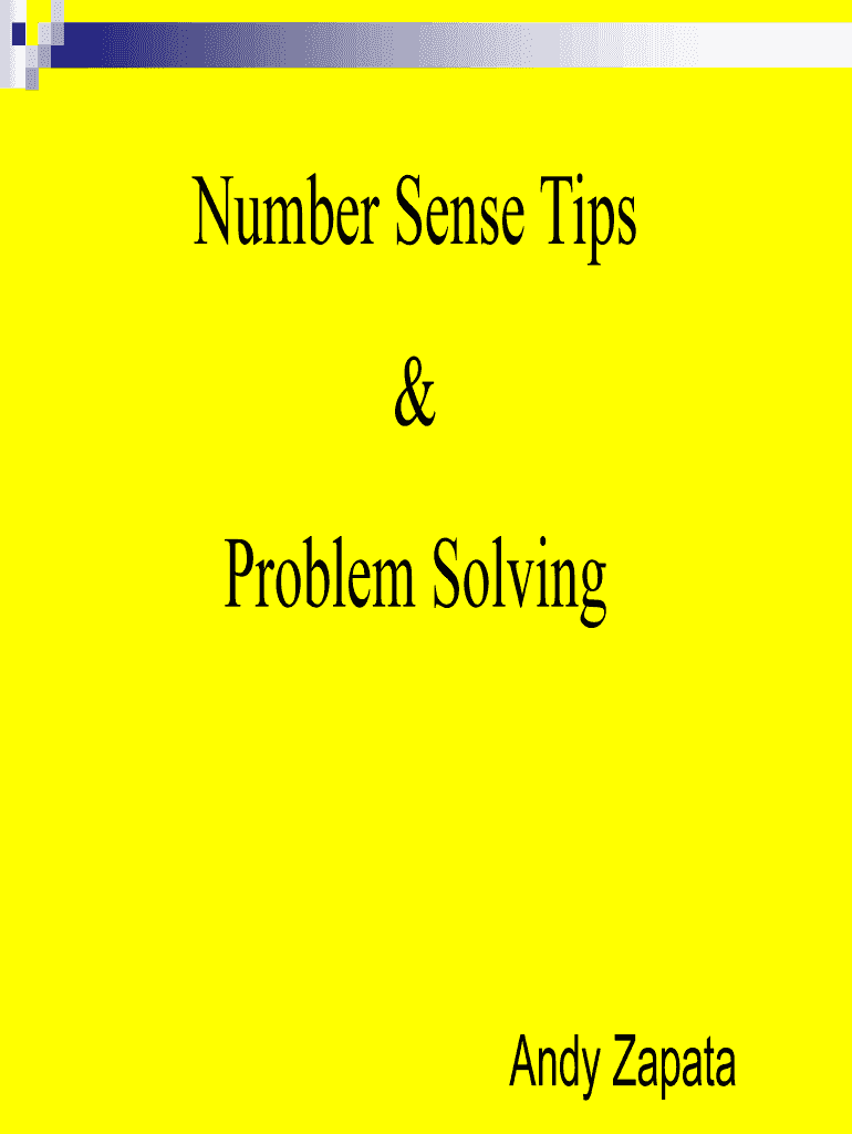 Number Sense Tips & Problem-Solving Andy Zapata Able ISD 1974 to 2017 7th grade math, high school math & Physics teacher Married 4 children & 3 grandchildren ETS Physics reader 10 years Cofounder