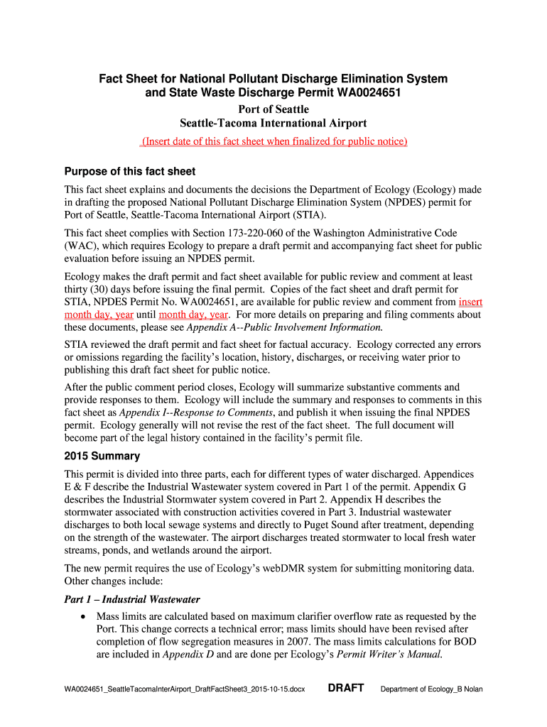 Get the free Fact Sheet for NPDES and State Waste Discharge Permit ... - fortress wa