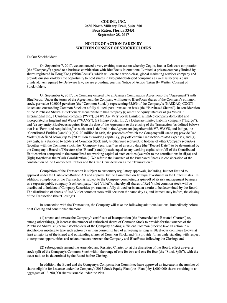 Get the free Notice of Action Taken By Written Consent of Stockholders
