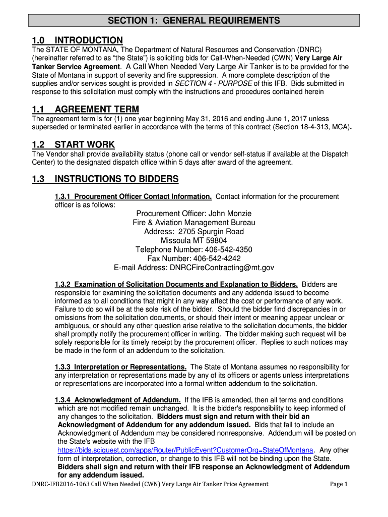 SECTION 1: GENERAL REQUIREMENTS 1.0INTRODUCTIONThe STATE OF MONTANA, The Department of Natural Resources and Conservation (DRC) (hereinafter referred to as the State) is soliciting bids for CallWhenNeeded