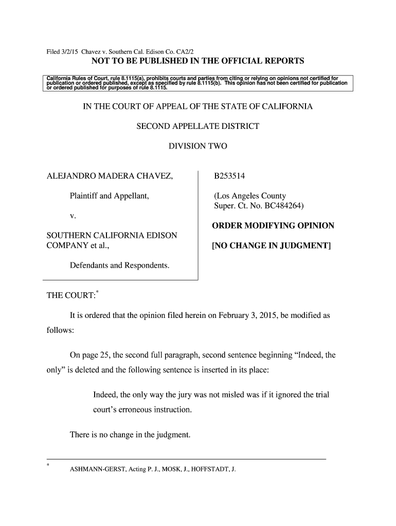 Filed 3/2/15 Chavez v. Southern Cal. Edison Co. CA2/2NOT TO BE PUBLISHED IN THE OFFICIAL REPORTS