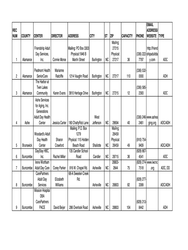 Alamance4Ashe5Brunswick6Buncombe7Buncombe8Buncombe9BuncombeDIRECTORADDRESSMailing: